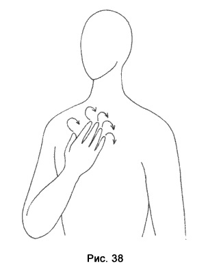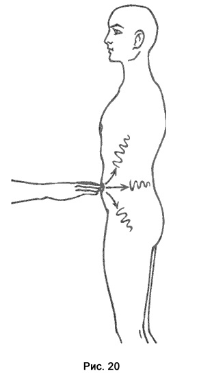 Двигайте ладонями вверх и вниз, оглаживая ее. Руки скользят по силовым линиям, огибают невидимые впадины и выпуклости. Возникают ощущения шероховатости и пустоты. Это сгустки неблагополучия, которые соответствуют болезненным нарушениям в органах и системах тела (рис. 86).