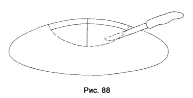 Теперь ножом вы прорезаете дуги, соединяющие концы креста. Получается круг (рис. 88).